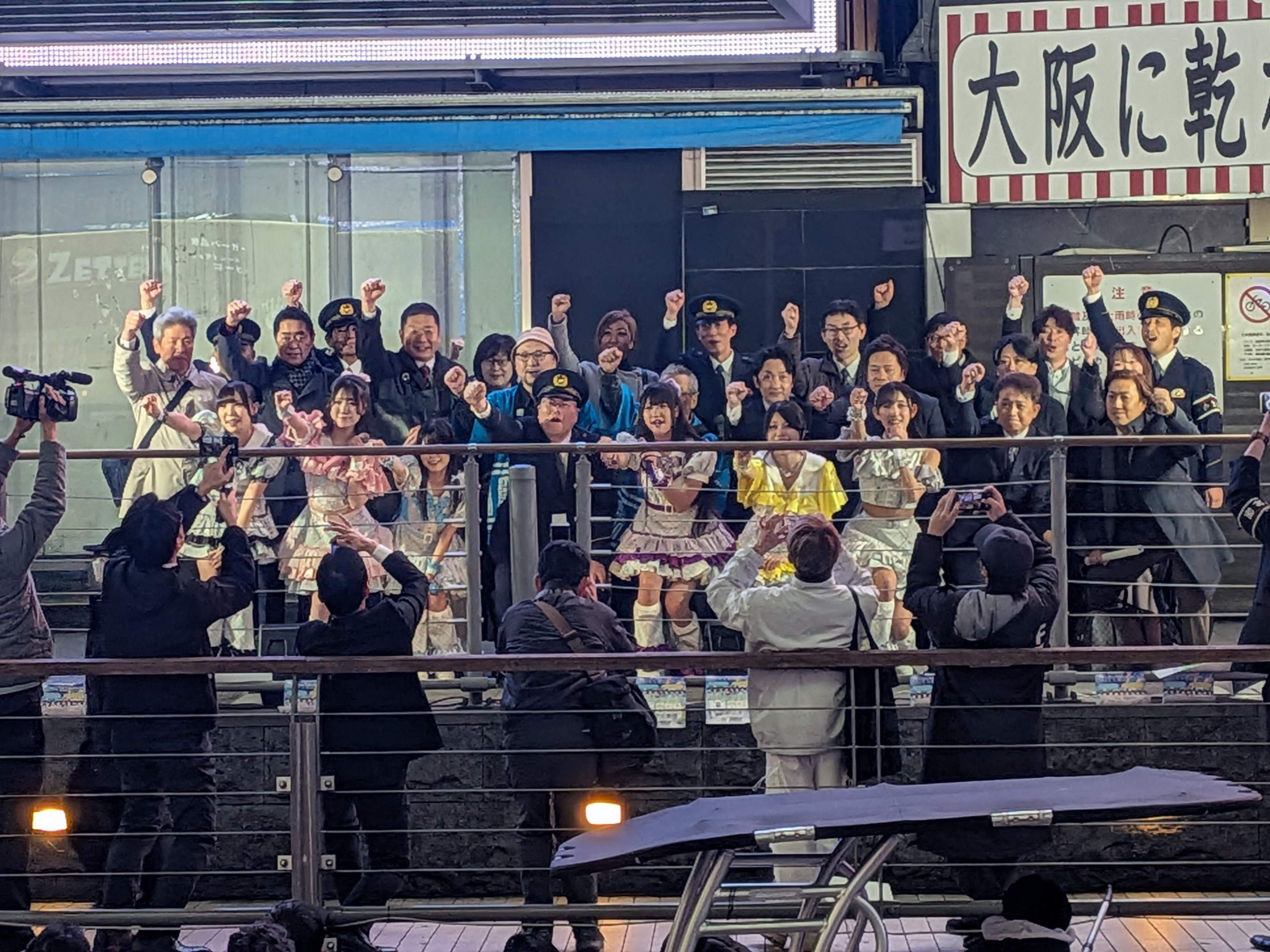 | 最後はシンセカイヒーロー皆様、商店街の皆様、江崎グリコの皆様、警察関係の皆様、大阪府・市の皆様、、カラオケボックス協会役員で大いに盛り上がりました |