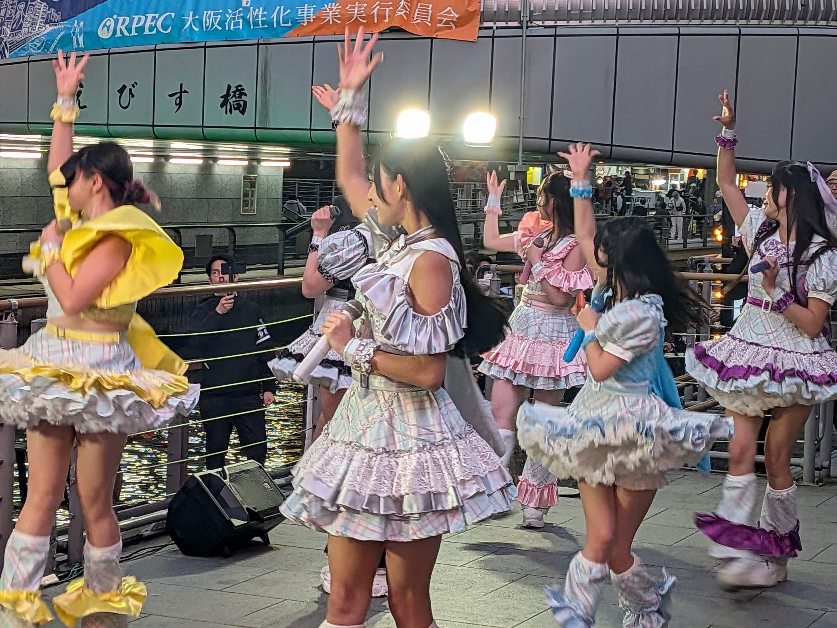 グリコの看板下の遊歩道いわゆる「グリ下」に移動し特設ステージにて啓発イベントを開催しました。