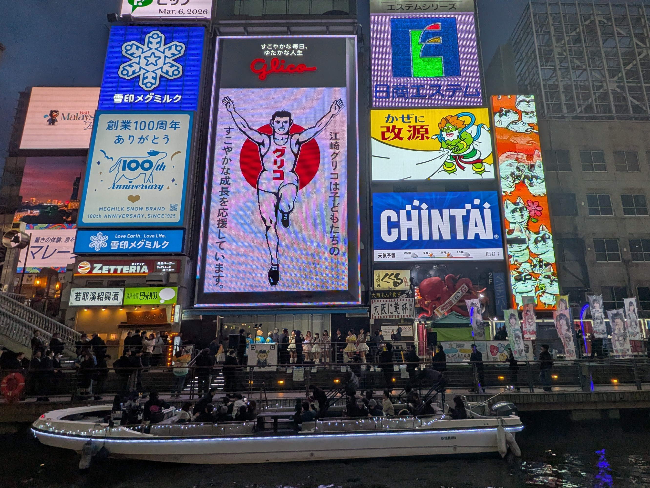 午後6時グリコ看板が点灯し 「二次元コード」が現われる |
